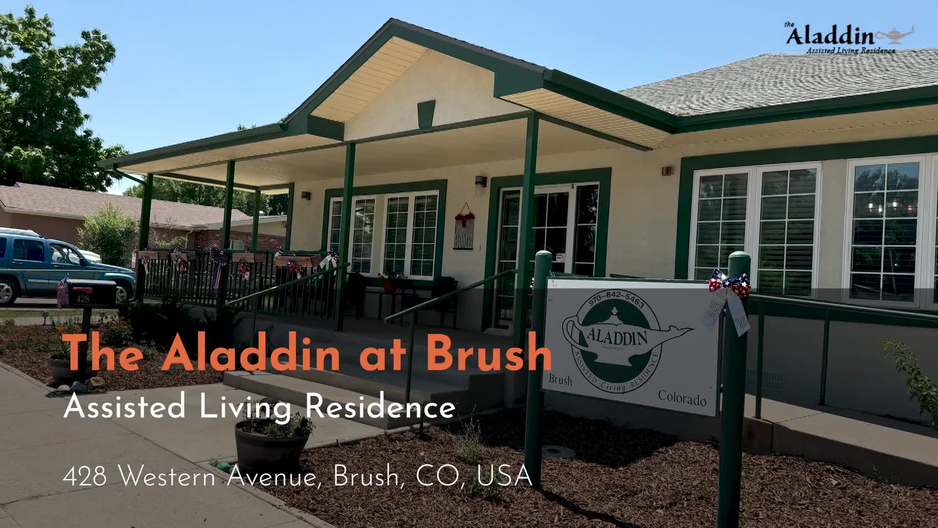 Located at 428 Western Ave, Brush, CO 80723, The Aladdin at Brush is a beautifully appointed home designed for an active senior lifestyle with wide hallways, no steps, and private apartments. Well-trained professional staff members are available just a moment away twenty-four hours every day.